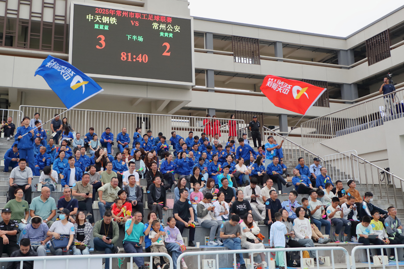赛场外,近百名中天职工组成的啦啦队统一身着蓝色工装,挥舞旗帜,高喊“经开加油,中天必胜”,为球队持续注入昂扬斗志。