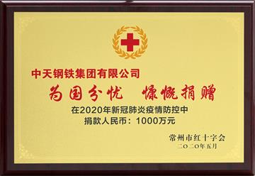 中天钢铁在做大做强企业的同时,始终牢记社会责任,响应习总书记“企业要致富思源、义利兼顾”的要求,热心社会公益和慈善事业。凭借崇高的社会责任感和坚实的慈善贡献,荣获“中国公益慈善十大影响力企业”“江苏慈善奖‘最具爱心慈善捐赠企业’”“常州市红十字人道博爱奖”“常州市慈善事业突出贡献单位”等称号。